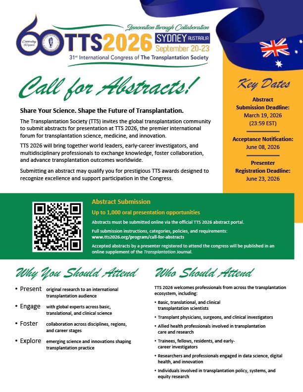 International Congress of The Transplantation Society (TTS 2026) | Sydney, Australia | September 20-23, 2026